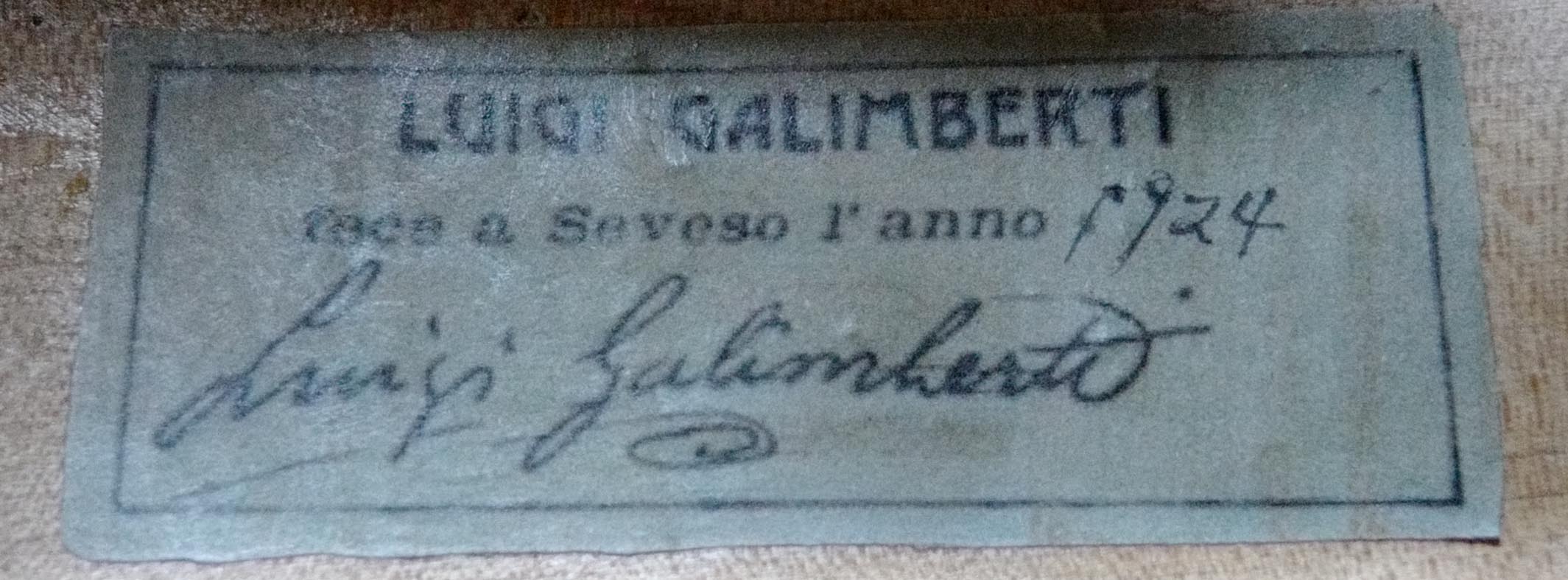 イタリア・ミラノの名工ルイジ・ガリンベルティ(LUIJI GALIMBERTI)はパリで楽器製作を学んだ後、ミラノでロメオ・アントニアッツィのもとで働き、アントニアッツィのもと、モンジーノ&ガルランディ社で製作し、その後ミラノで工房を開設した。生涯で、約350挺のヴァイオリン、25挺のヴィオラ、200挺のチェロを製作。数々の賞を受賞:1931年ローマ国立ヴァイオリン製作コンクール